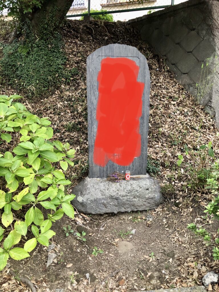 というほど歩かずとも物件の前に石碑発見
