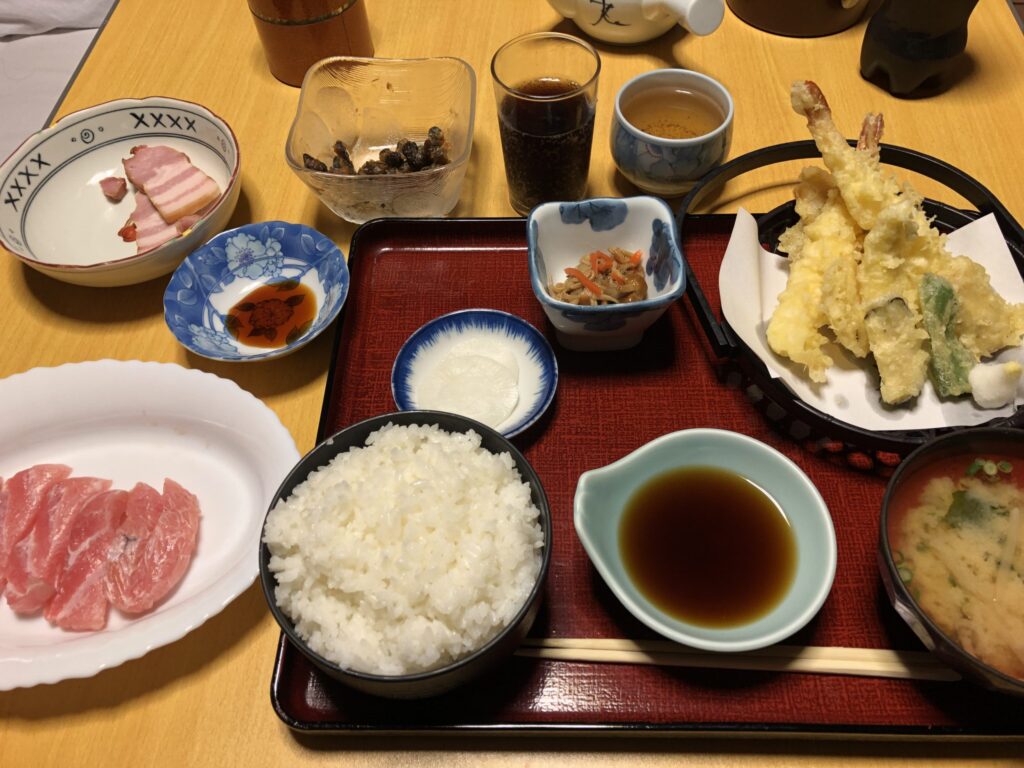 2日目はひっつみ定食に冷蔵庫で熟成させた刺身