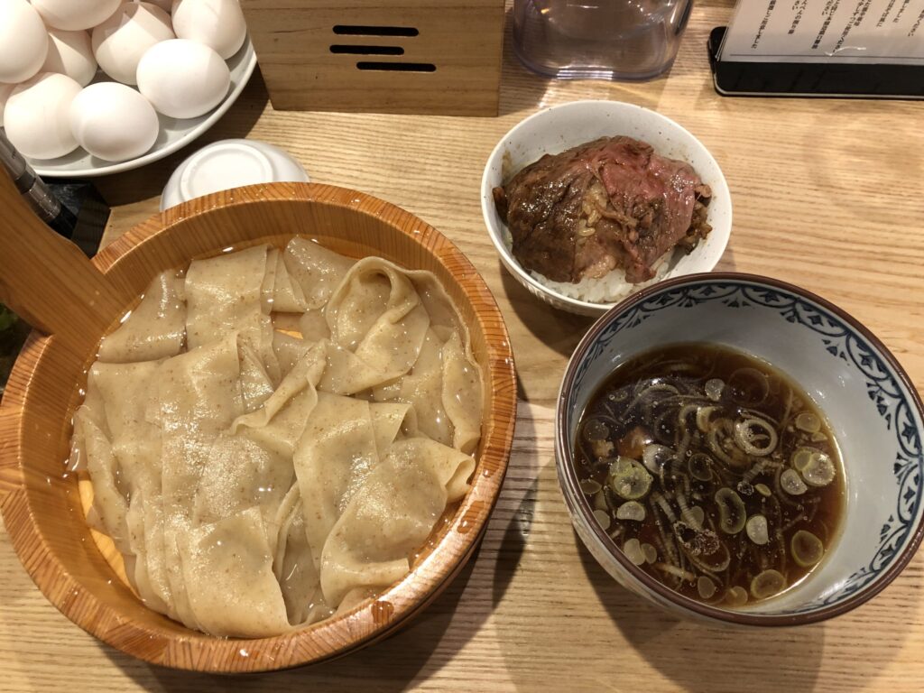 頼んだのはインスタ映えのこちらの極太つけ麺&5Aの和牛を使った牛めし