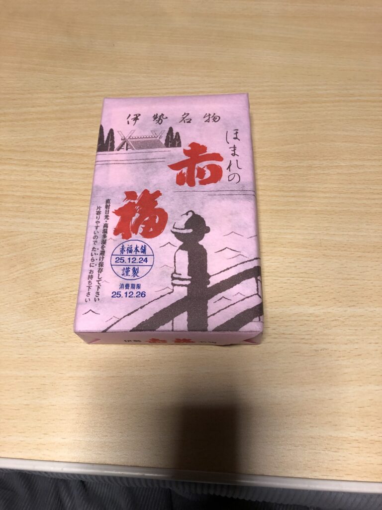 こちらはお連れさんが名古屋駅で購入してきた赤福