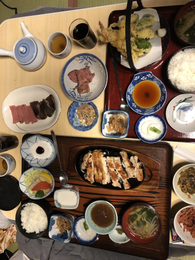 二日目のお食事はいつものように天ぷら定食に昨日の残り物