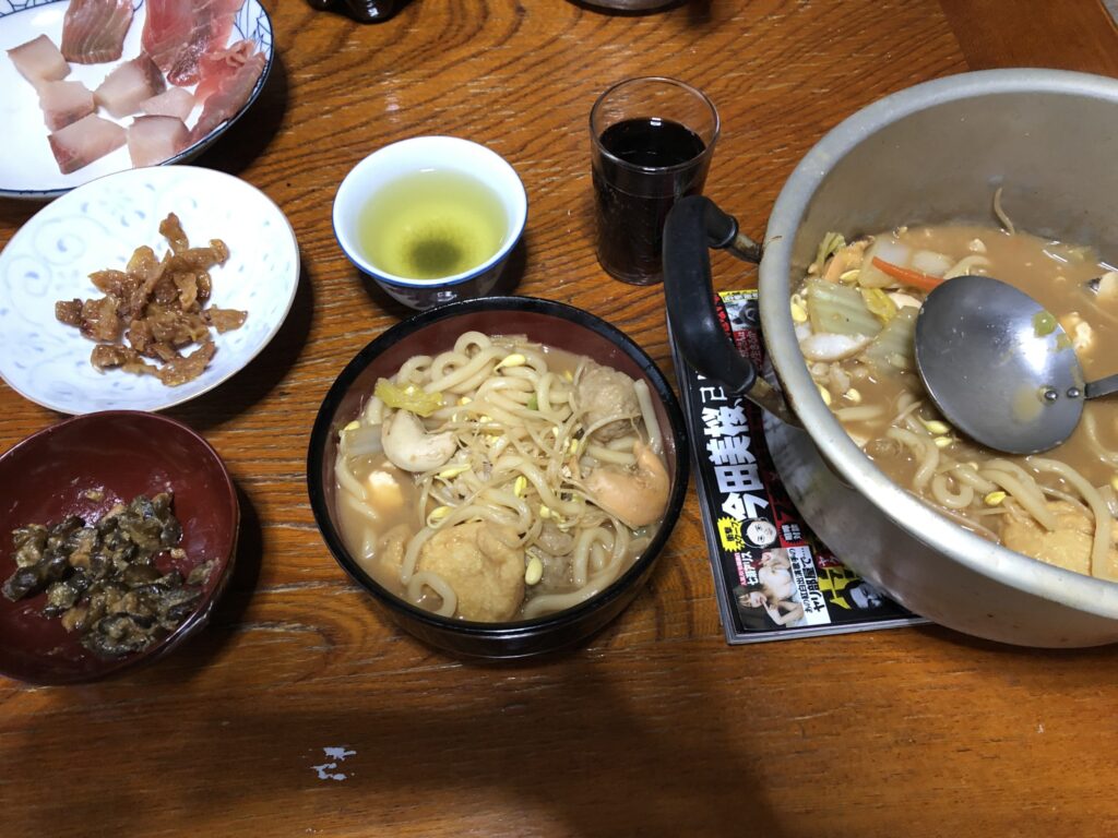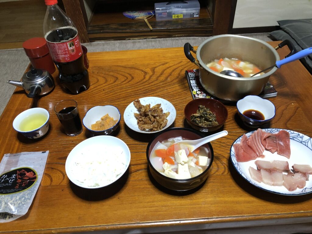 1日目の夕食はひっつみにウニやらマグロやブリ