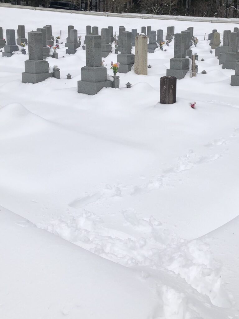 スニーカーで雪をかき分けてお経をあげに行ったので靴下が濡れて足がマジで冷たい!!